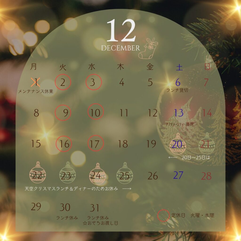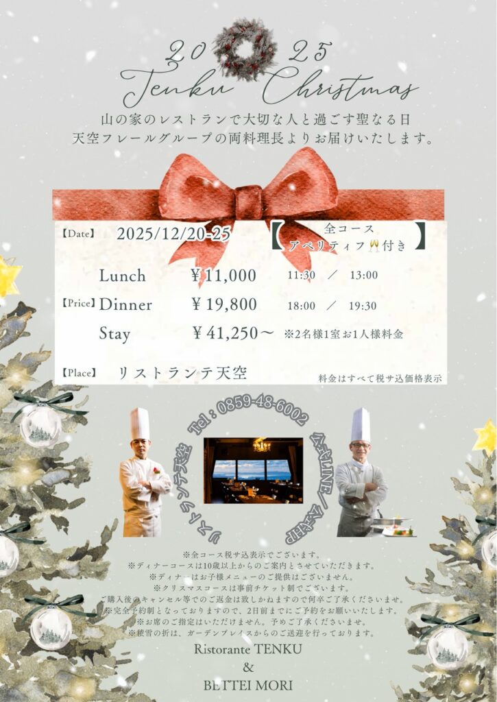☆12月20日~25日は、リストランテ天空 Xmasランチ&ディナーのため、別邸母里はお休みです。
