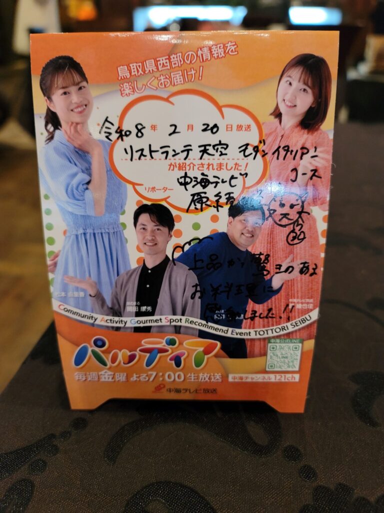放送前の今だからこそ、落ち着いだ空間でゆっくりとお食事をお楽しみいただけます。