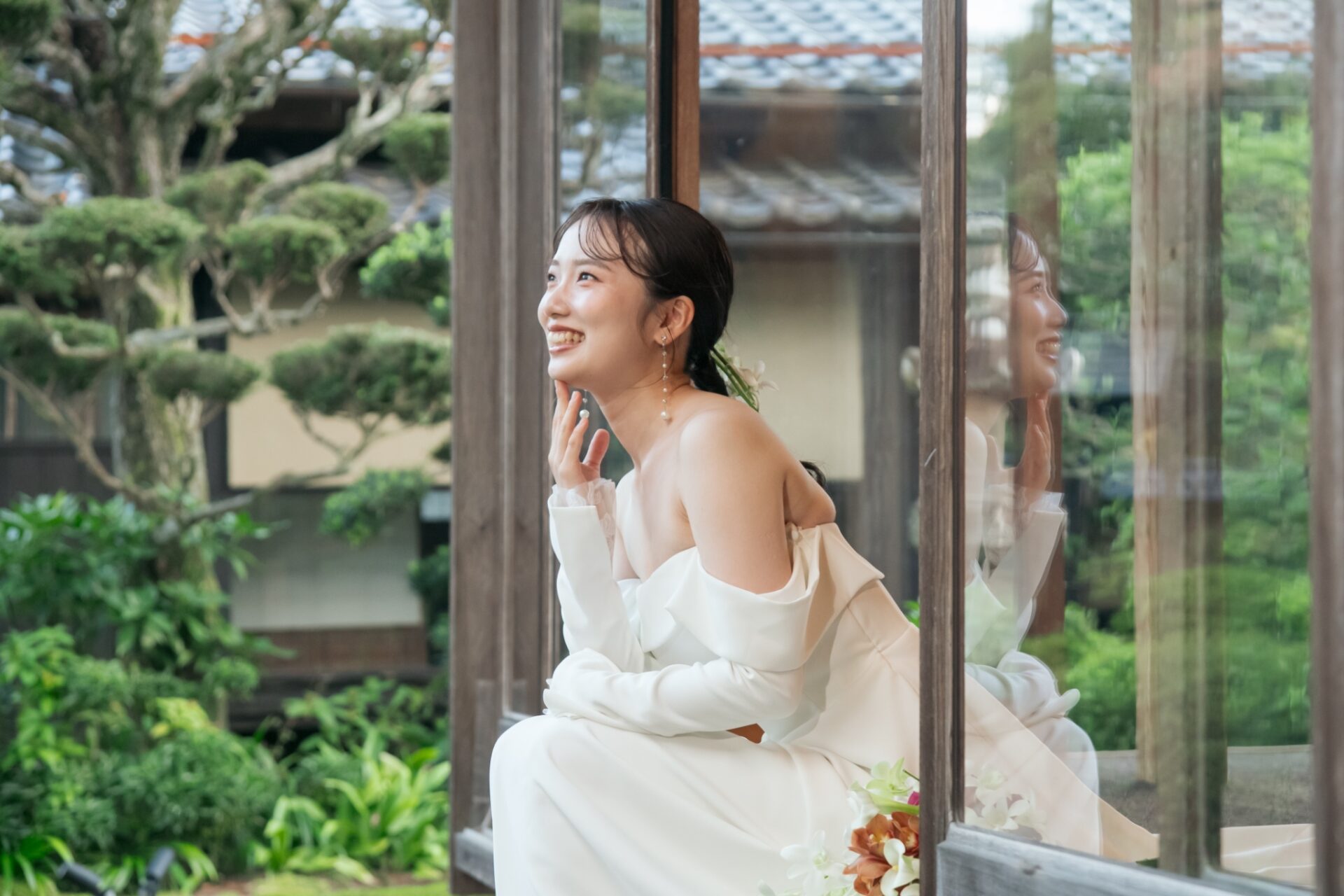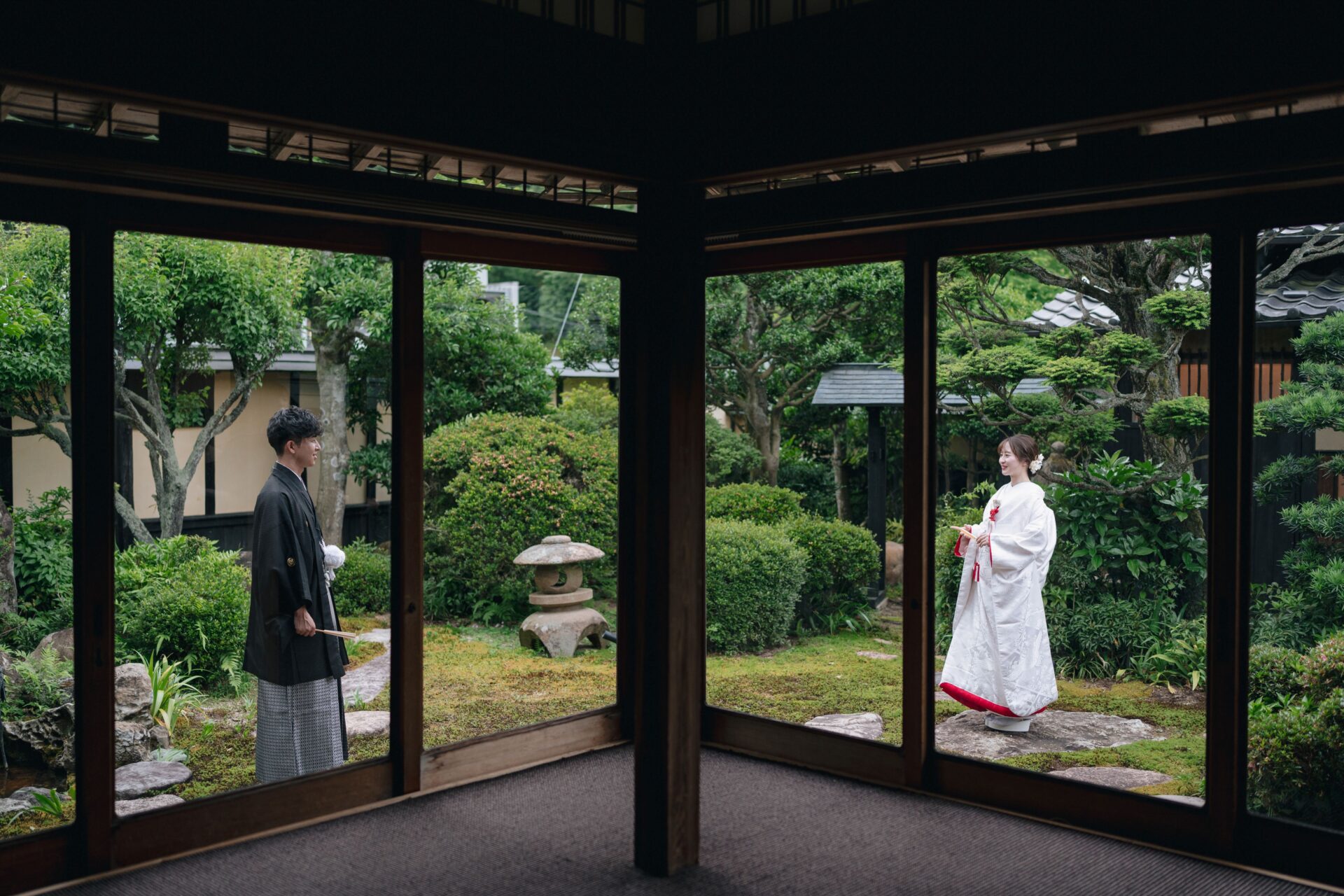 祝言(人前式)では、家と家を結び、人と人を結びます。別邸母里では披露宴会場内での会場内人前式も可能です。